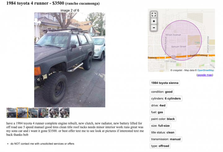 So it got me thinking, what if I waste some time browsing current listings of trucks and vehicles and come up with my own list of REAL LIVE ACTUAL listings? So, how much $5,000 could get me? This time I searched only craigslist.com with these factors: